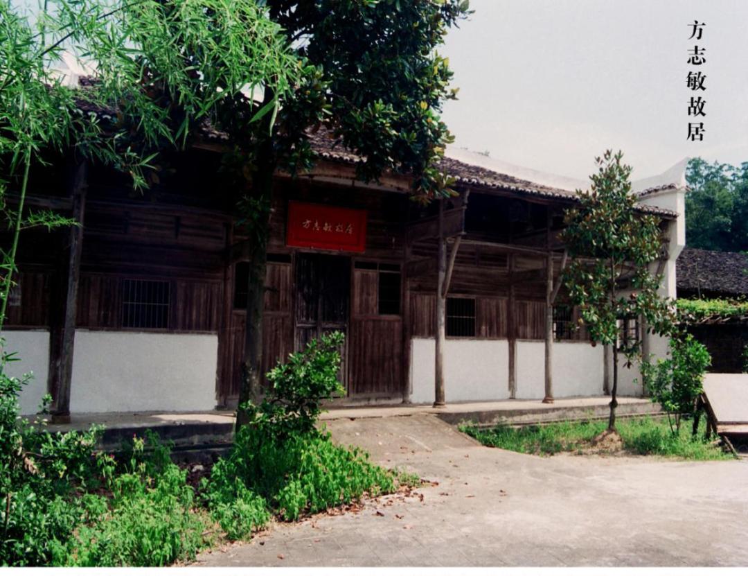 该故居为方志敏祖父方长庚始建,方志敏童年、少年时期均在这里度过,求学、从事革命活动期间亦曾居住于此。土地革命时期,弋阳九区屡遭国民党军队疯狂“围剿”,故居先后多次被焚烧,整个湖塘村变成一片废墟。1950年,由人民政府拨款和本地村民捐款在原址按原貌仿建。故居内有一幅方志敏自拟的对联:“心有三爱奇书骏马佳山水,园栽四物青松翠竹洁梅兰”。如今故居园内的松柏竹梅兰,挺拔翠滴、飘香四溢。