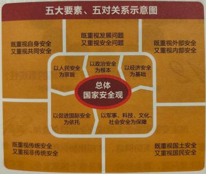 总体国家安全观是一个内容丰富、开放包容、不断发展的思想体系,其核心要义可以概括为五大要素和五对关系。五大要素就是以人民安全为宗旨,以政治安全为根本,以经济安全为基础,以军事、科技、文化、社会安全为保障,以促进国际安全为依托。五对关系就是既重视发展问题,又重视安全问题;既重视外部安全,又重视内部安全;既重视国土安全,又重视国民安全;既重视传统安全,又重视非传统安全;既重视自身安全,又重视共同安全。总之,厘清五大要素、把握五对关系,是理解总体国家安全观的关键所在。