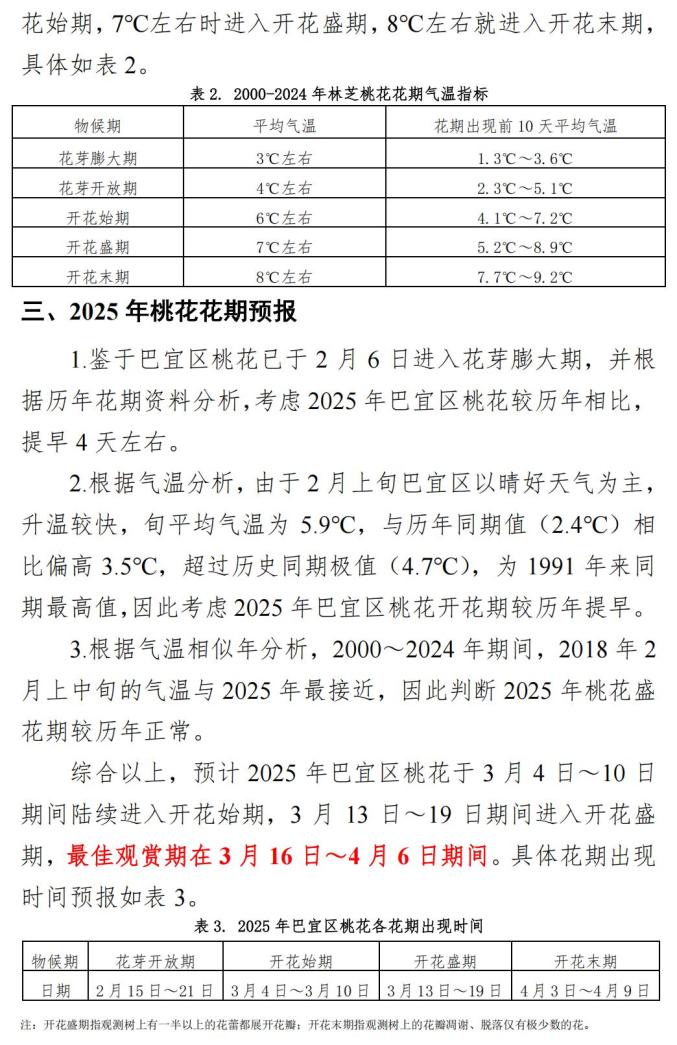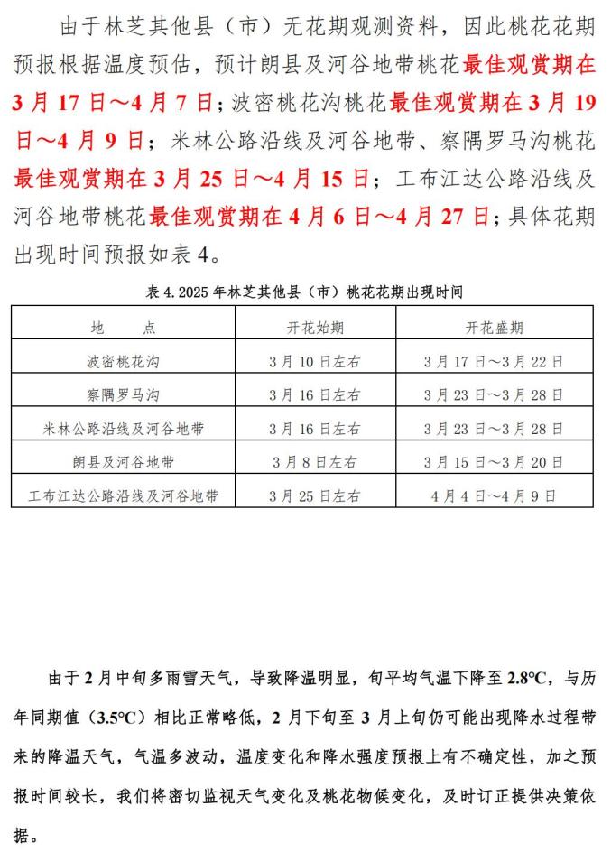 《林芝市2025年桃花花期预报》