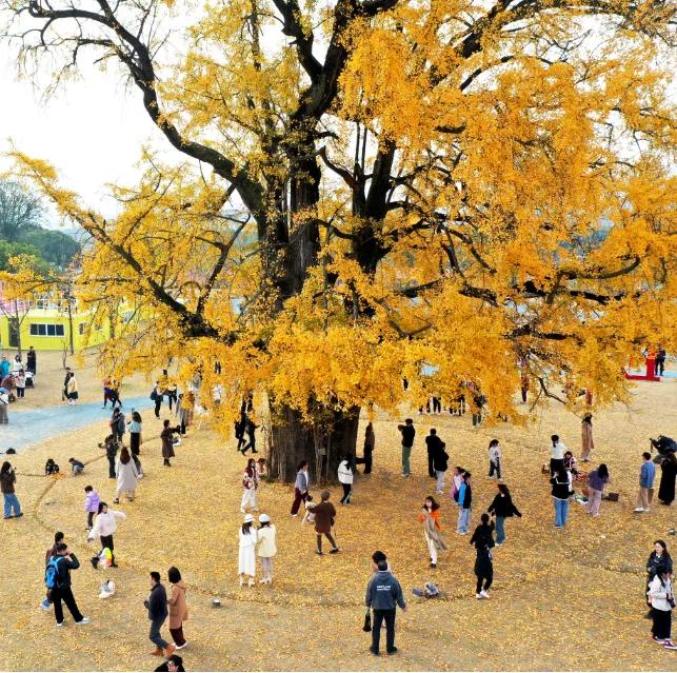 地铁6号线可直达的富阳受降村银杏公园,有一棵六至七个人才能环抱起来的千年古银杏,大树自然村因它得名,银杏公园围它而建。这棵古银杏,不仅是村民心中神圣的象征,更成了年轻人争相打卡的好去处。