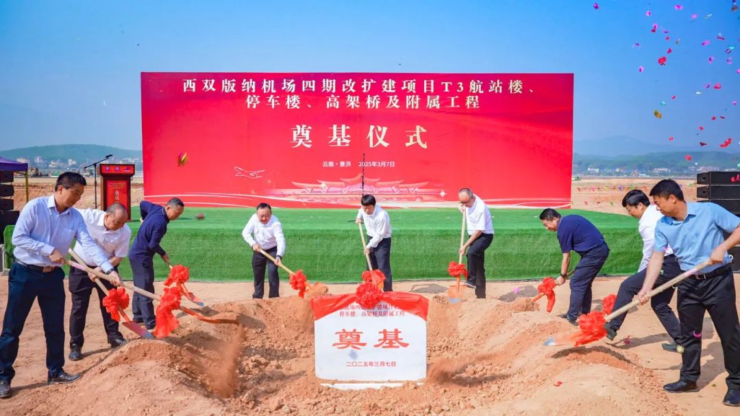 3月7日,西双版纳嘎洒国际机场四期改扩建项目T3航站楼、停车楼、高架桥及附属工程奠基仪式举行。据了解,西双版纳嘎洒国际机场四期改扩建项目作为云南省重大项目,是省、州、市三级政府着眼发展大局、推进港产城联动发展、完善综合交通运输体系的重大战略举措;也是云南航空产业投资集团积极践行省委“3815”战略发展目标,增强民航对云南经济发展影响力、辐射力和带动力的重要一环。自2022年12月29日正式开工建设以来,西双版纳区域机场管理分公司积极推行“建运一体”管理理念,各参建单位有效强化“建设与运营、监管与实施、安全与效率”的高效协同,新站坪场道工程、飞行区跑道扩建工程、航站区配套单体工程等多个工程项目稳步推进,并结出了职工倒班宿舍顺利验收、机场高峰小时保障能力提升至20架次、年旅客吞吐量突破700万人次的累累硕果。