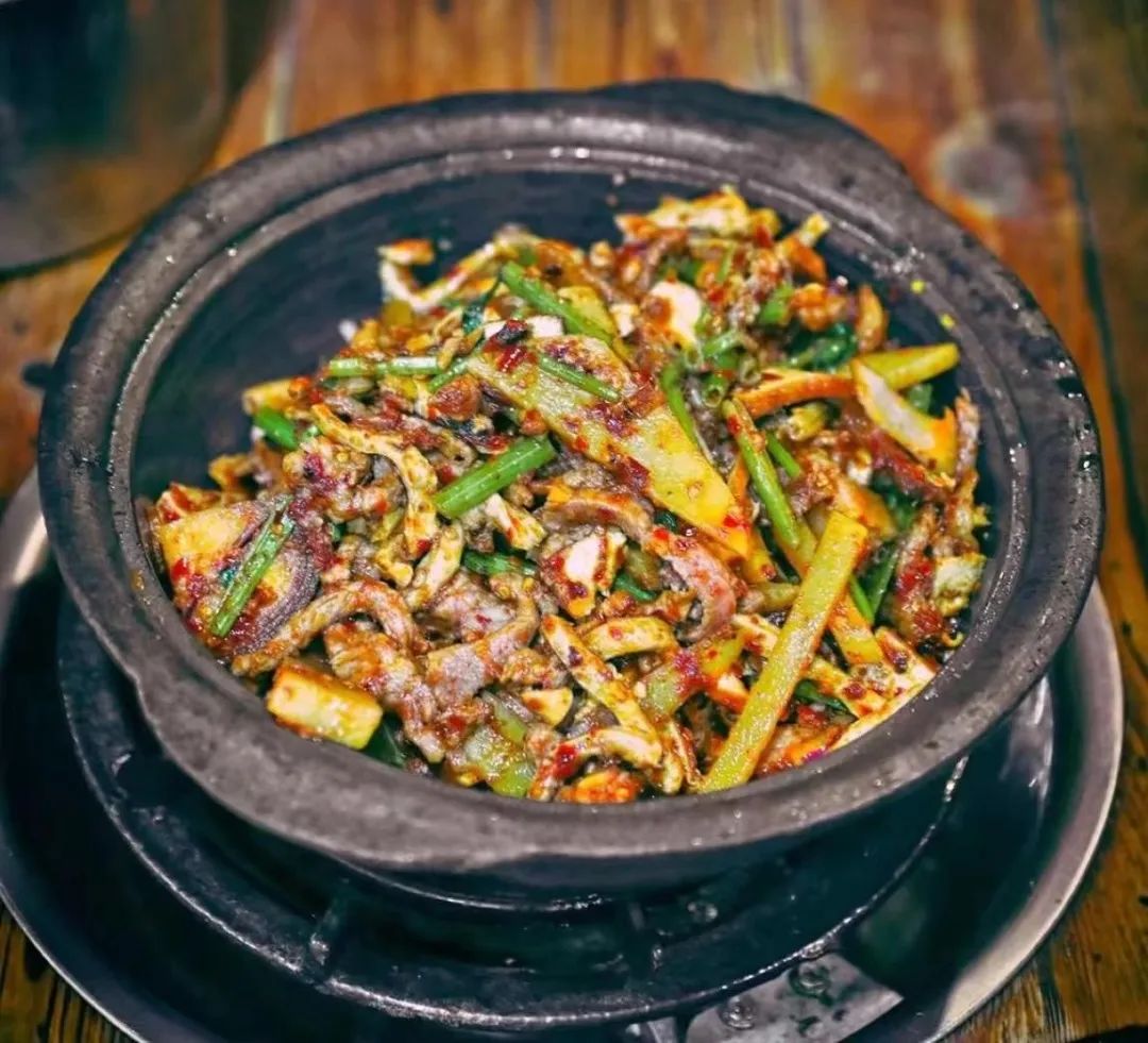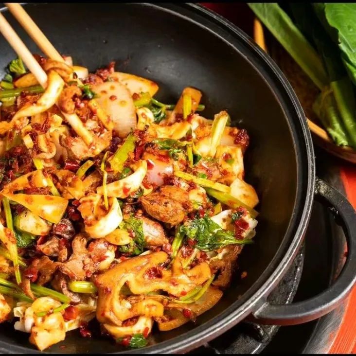 图源于马蜂窝@好吃不胖菡啾咪新鲜现炒的跑山鸡,配上糍粑辣椒的独特风味,鸡肉紧实有嚼劲,鸡皮口感香辣软糯。鸡肉的汁水与辣椒的味道相互渗透,吃三碗饭都不夸张!