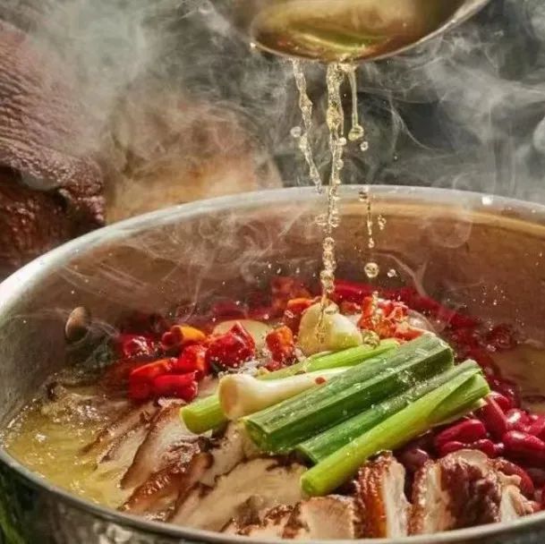 图源于@三姨妈小肠火锅筒子骨加鸡架,吊出高汤,打结的小肠吸满汤汁,蘸上特制糊辣椒,口口都是爆汁体验。