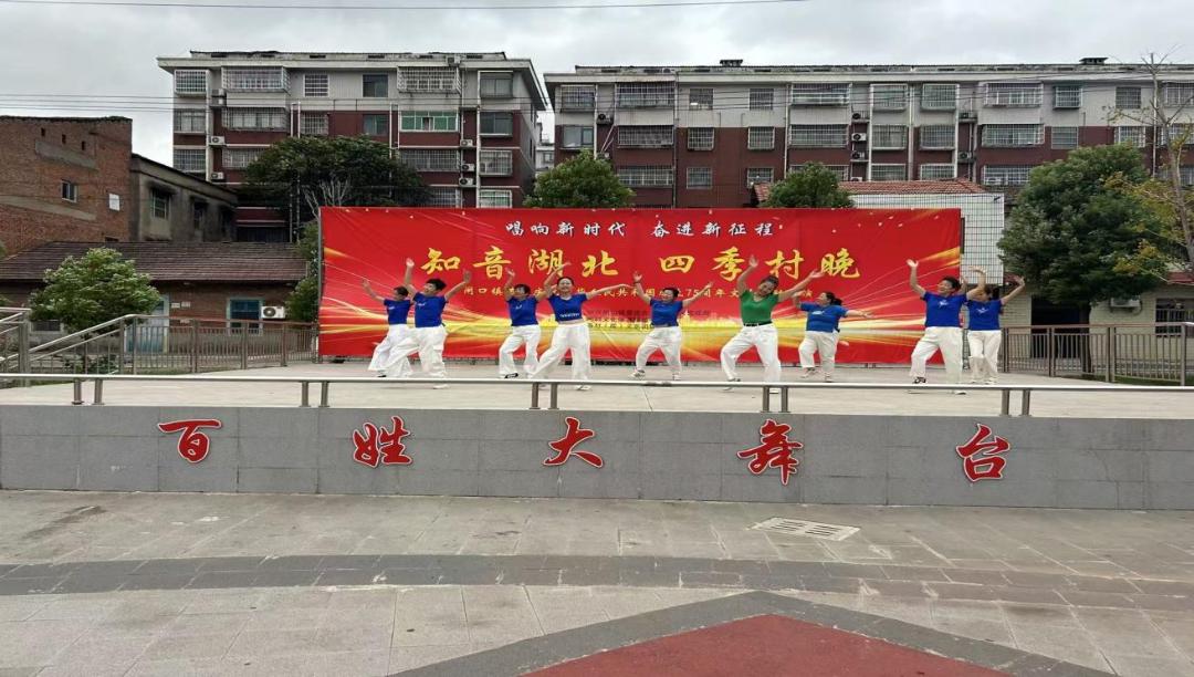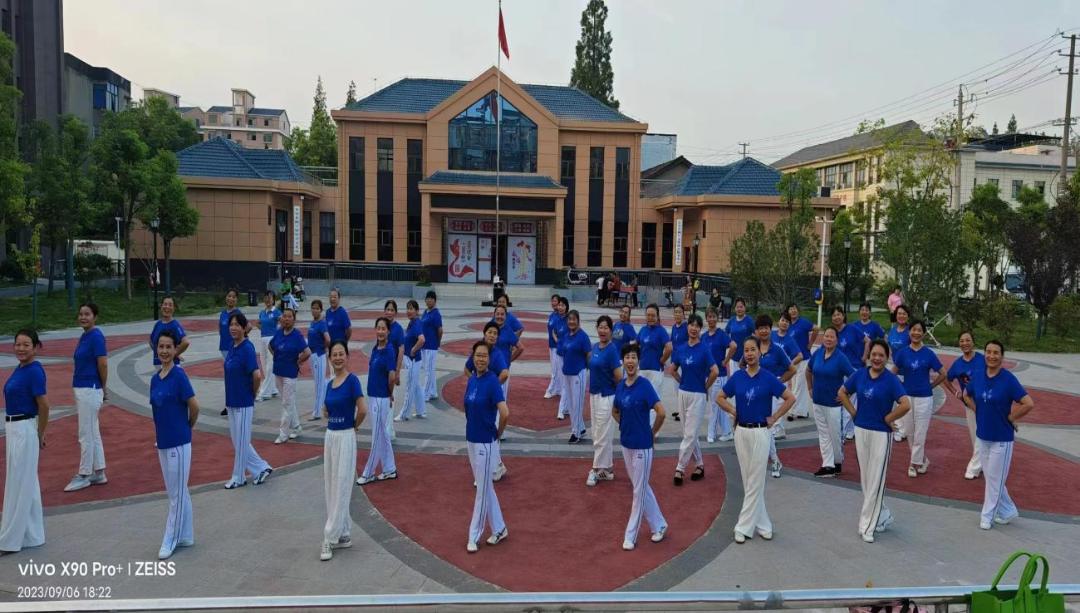 闸口镇双剅口社区陵溪广场总占地面积7700平方米,其中广场面积1950平方米,建筑面积5750平方米,绿地率35%。广场内建有140平方米的百姓大舞台,文化长廊100平方米,配备灯光音响1套及说鼓、大鼓等6类文艺表演器具。广场建成后居民自发在广场开展各种休闲文艺活动,同时还承接了县镇两级部门举办的“四季村晚”“送戏下乡”、闸口镇小龙虾节等群众文化活动。为提升公共文化服务效能,社区成立了一支50人的文体志愿者队伍、水乡神韵舞蹈队、腰(军)鼓队、篮球队等文体队伍,在享受文化广场带来的好处同时也热心服务群众,带动群众共同参与文化活动,进一步增强群众的参与感与获得感。03