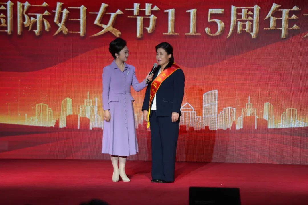△播放上合组织妇女论坛工作短片市领导为全国三八红旗手、全国巾帼文明岗、齐鲁最美巾帼奋斗者颁奖。大会以情景剧、诗朗诵、表演唱等形式展示岛城女性巾帼逐梦、竞绽芳华的别样风采,巾帼先模代表分享了她们岗位建功的感人事迹。