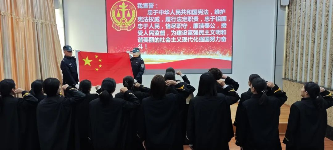 随后,李江润院长面向国旗国徽,手抚宪法,领诵誓词,全体女法官列队肃立,跟诵誓词。铿锵誓言,初心如磐。一字一句是对正义的坚守,更是对初心的回望。