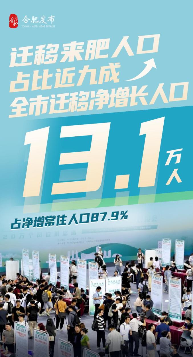 迁移来肥人口占比近九成,全市迁移净增长人口13.1万人,占净增常住人口87.9%。