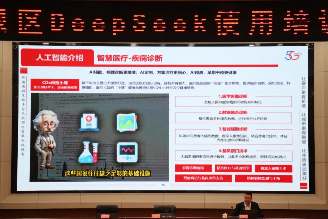 在《DeepSeek智能助手深度体验及应用》的精彩分享中,马有有从DeepSeek的核心技术讲起,详细阐述了DeepSeek智能助手在自然语言处理、图像识别、语音识别等方面的卓越表现,并通过一系列生动的应用案例,展示了DeepSeek在政务、教育、医疗等领域的广泛应用前景。讲解深入浅出,让在场的干部对DeepSeek有了更加直观和深入的了解。