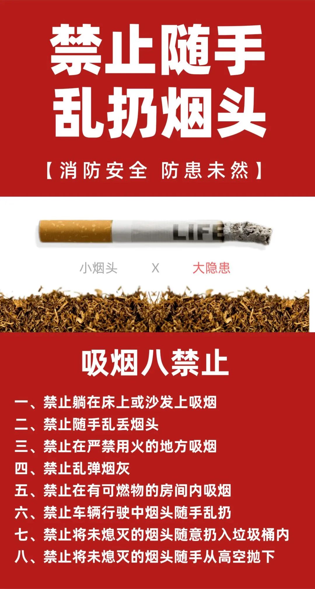 随手掐灭烟头,切勿卧床吸烟。这是我们每个人都应尽的责任。烟头虽小,但火灾隐患却不容小觑,为了自身和他人的安全,我们必须高度重视烟头可能带来的危险,时刻保持警惕。