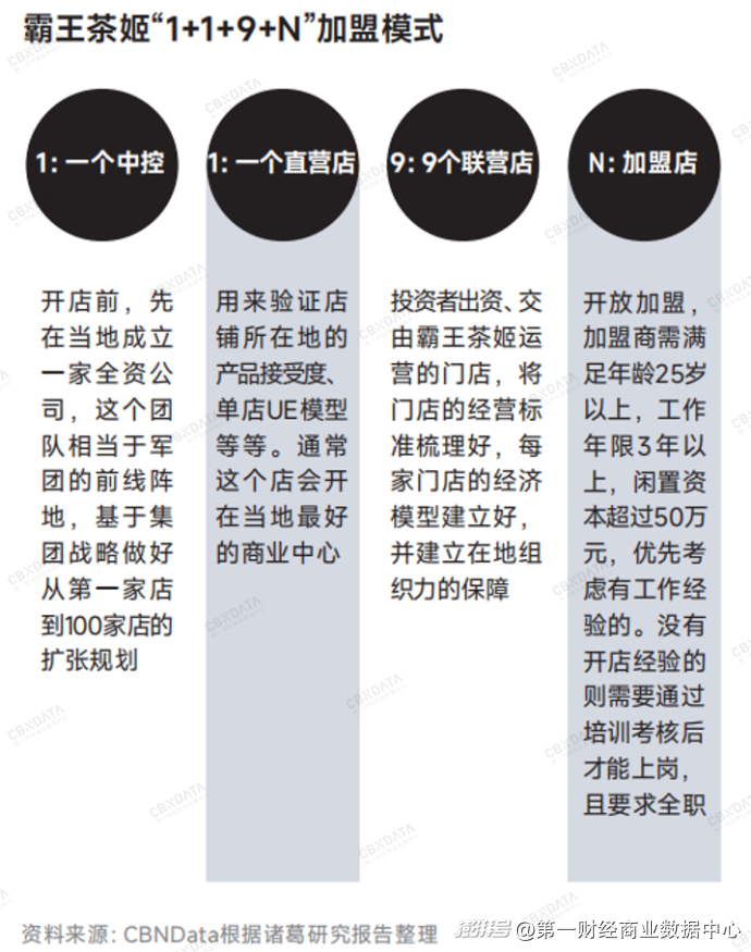 最后,在服务体系的建设上,霸王茶姬拥有严格的加盟商筛选标准,保证公司自上而下的经营策略能够有效执行。据了解,霸王茶姬对加盟商有年龄、工作经验、闲置资本等方面要求,以此保证门店有序运营并提供高效高质量服务。同时霸王茶姬推出“1+1+9+N”的加盟模式,便于公司对加盟商与门店进行整体规划管理。