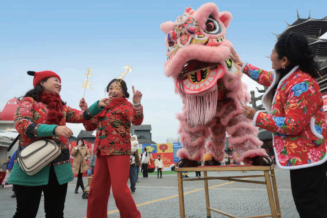 2025年春节假期,舞狮艺人与市民在贵阳市街头互动(张晖 摄 贵州图片库供图)根据要求,申遗工作组迅速采取行动,大范围、多方式搜集相关信息、数据和实例,按时提交了内涵丰富、叙事生动、场景鲜活的视像材料,以完整有力的支持性证据链传达了春节这一传统节日有助于可持续发展的“社区声音”,充分说明把春节列入《人类非物质文化遗产代表作名录》对以下6个可持续发展行动领域将作出来自中国的贡献:粮食安全、优质教育、性别平等、包容性经济发展、环境的可持续发展(包括气候变化)、和平与社会凝聚力。