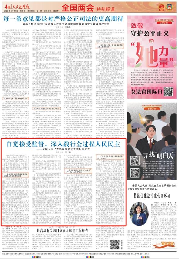 自觉接受监督,深入践行全过程人民民主——全国人大代表热议最高法工作报告