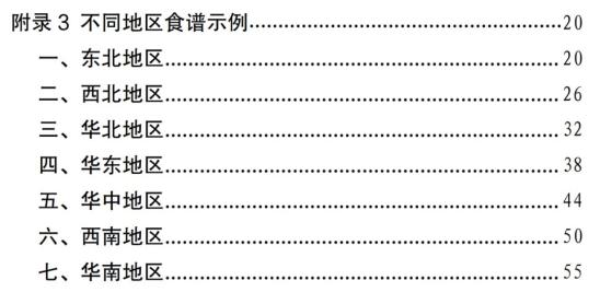 值得注意的是,这份食谱细化到了全国不同地区的食谱示例,并备注了食谱的“总能量”。