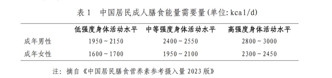 控制总能量摄入和保持合理膳食是体重管理的关键。控制总能量摄入,可基于不同人群每天的能量需要量(如下表),推荐每日能量摄入平均降低30%~50%或降低500~1000kcal,或推荐每日能量摄入男性1200~1500kcal、女性1000~1200kcal的限能量平衡膳食。