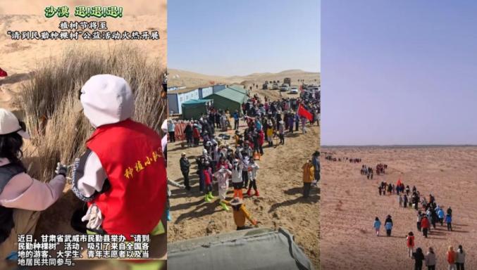 节目播出以后,“请到民勤种棵树”迅速登上热搜,年轻人通过弹幕刷屏:“原来梭梭树真的能治沙!”“我要去民勤打卡!”。这场“综艺+公益”的跨界联动,意外点燃了Z世代的生态热情。2025年3月12日,正值新一年的植树节,种树活动进入高峰期,全国各地网友自发到民勤种树开启了“攻打沙漠”大作战,剑指“沙退绿进”。