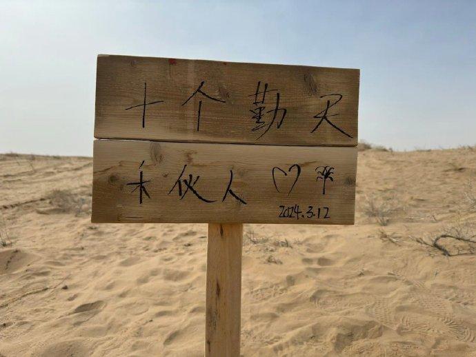 18万棵树是一种什么样的概念,也许很多人一辈子都没见过那么多树,但他们却用十几天时间种了下去。有句话说的好,沙漠里种不出玫瑰,但是爱能将沙漠变绿洲。他们种树,却不忘给“禾伙人”们加个牌子。