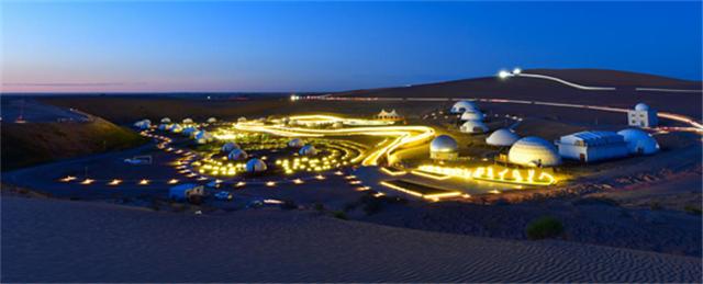 摘星小镇:由国家天文台提供专业技术支持,立足沙漠和星空资源,以沙漠观星为主题,利用独有的沙漠地形地貌,以宇宙银河系为设计主线,分别采用集群式球型、双峰帐篷等设计风格,打造集科普、研学、旅游于一体的沙漠天文科普特色旅游基地。游客置身其中,可感受栖身银河、漫步苍穹、手可摘星的无限神秘和美妙。