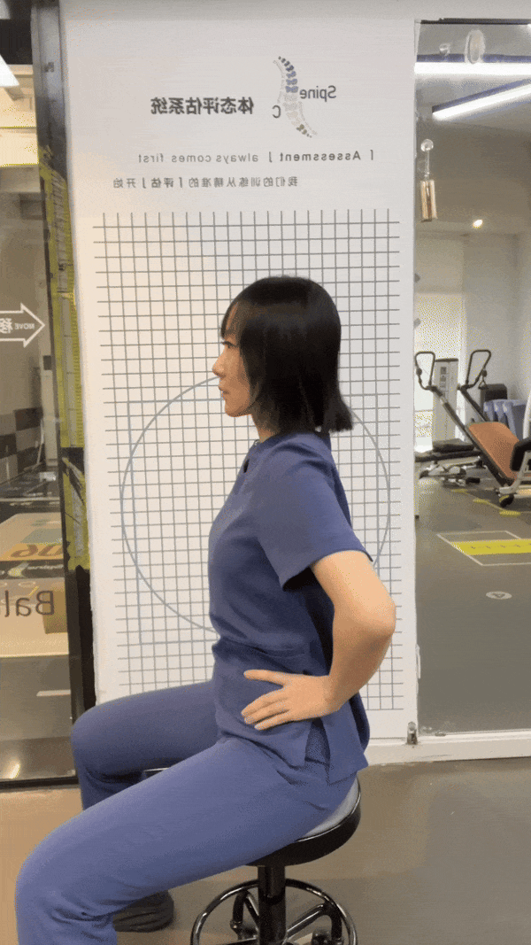 考虑到大部分人应该正在坐着,我们就通过坐姿来感受髋部的正确位置。大脑学习感受了屁股的正确位置,才能在之后更好地控制它撅起来。