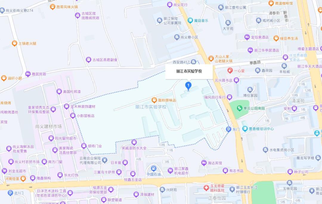 丽江市实验学校丽江市实验学校 (古城区西安路 457 号 ),考试当天由东南门进入考点。