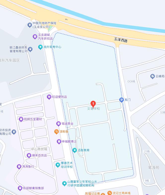 玉龙县文笔学校玉龙县文笔学校(玉龙县丽水路(笔海苑西侧约 100米)),考试当天由南大门进入考点。