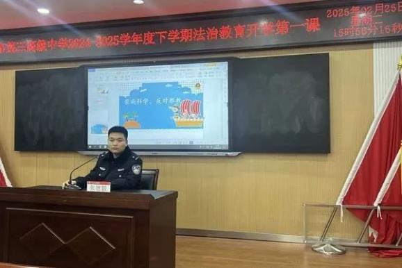 2025年2月25日,铁东公安分局北市场派出所民警张德毅连同北市场街司法所领导为第三高中的学生们带来了一场意义非凡的法治教育“开学第一课”。