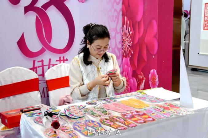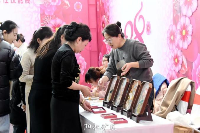 矿区文化中心展厅内,“巾帼赋能 建功阳和”女性技能展活动开启了一场视觉与文化的盛宴。巾帼图片展区,以展板和图片的形式展示了巾帼标兵、巾帼文明岗、创业典型、先进工作者等矿区优秀女性的突出成绩。巾帼才艺展区,女性代表带来的琵琶、小提琴器乐演奏,赢得了观众的阵阵掌声。巾帼技能展区,设置了24个技能展位,包含布老虎、剪纸、刺绣、面塑、葫芦画、版画、沙画、油画、咖啡、茶艺、烘焙等,精美绝伦的苏绣、巧夺天工的剪纸、创意十足的烘焙、巧妙精致的玉米叶编织……这些作品不仅是女性技能的展示,更是她们对生活热爱的体现。活动现场热闹非凡,每个展位前都挤满了学习技艺、参与体验的市民。