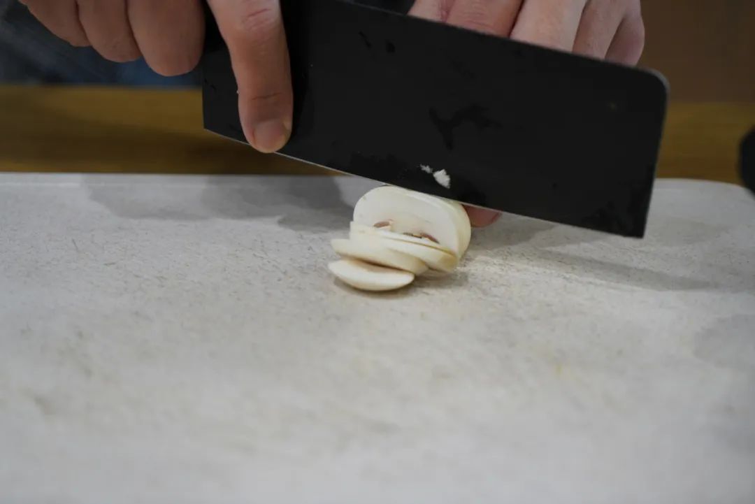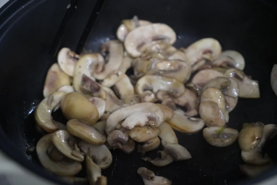 蘑菇切薄片,在黄油中煎出焦糖色边缘,香气扑鼻,如同将整片松针林的精华收进锅中。
