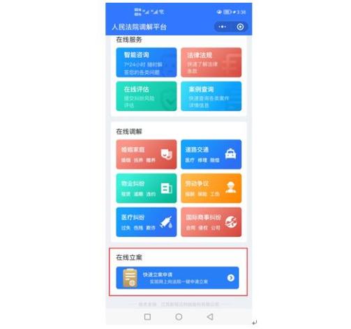 或者在“人民法院调解平台”小程序端选择“在线立案”
