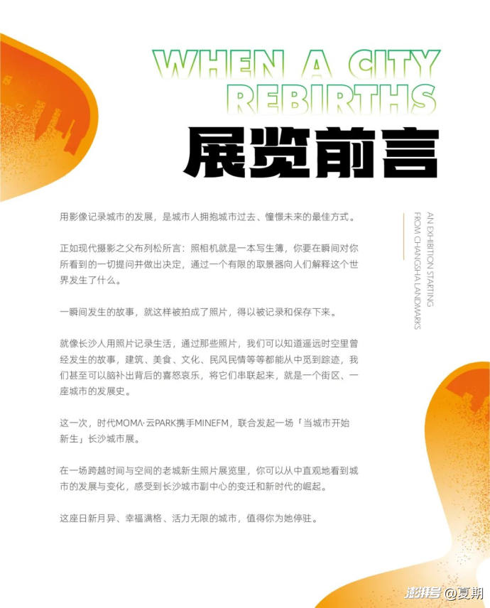 《当城市开始新生》是一场关于城市更新的影像展,我们通过新老照片的对比,记录长沙的成长轨迹,让人们在光影交错中,重新认识这座城市的“新生”瞬间。