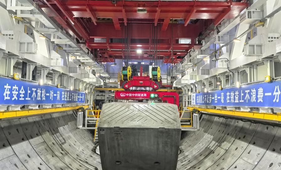 自2024年4月29日“领航号”盾构机始发以来,中铁隧道局团队以“打造世界级超大直径盾构穿越长江标杆工程”为目标,围绕超大直径超长距离独头掘进、生态环境敏感、地层硬质胶结物、强弱透水地层交替、冲淤变化交替等诸多难题与挑战,积极开展科技攻关,加大新质生产力培育应用,形成盾构隧道智能建造2.0技术体系,将智能化理念和技术深度嵌入到崇太长江隧道建造全过程,创造了15米级超大直径盾构单日最快掘进28米、单月最快掘进718米的纪录。