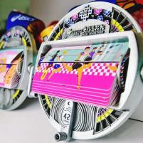 取下正面的摇杆,对接右侧插口,由外向内摇动,一张张卡片也随之翻动。30张卡片,60幅图案逐帧展现,在快速翻动间,原本静止的图案变成了连续的画面。