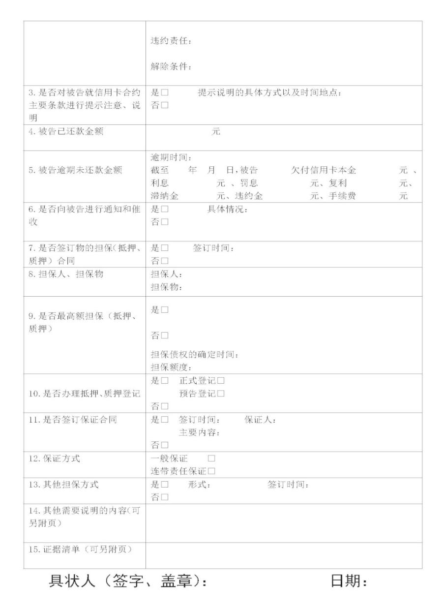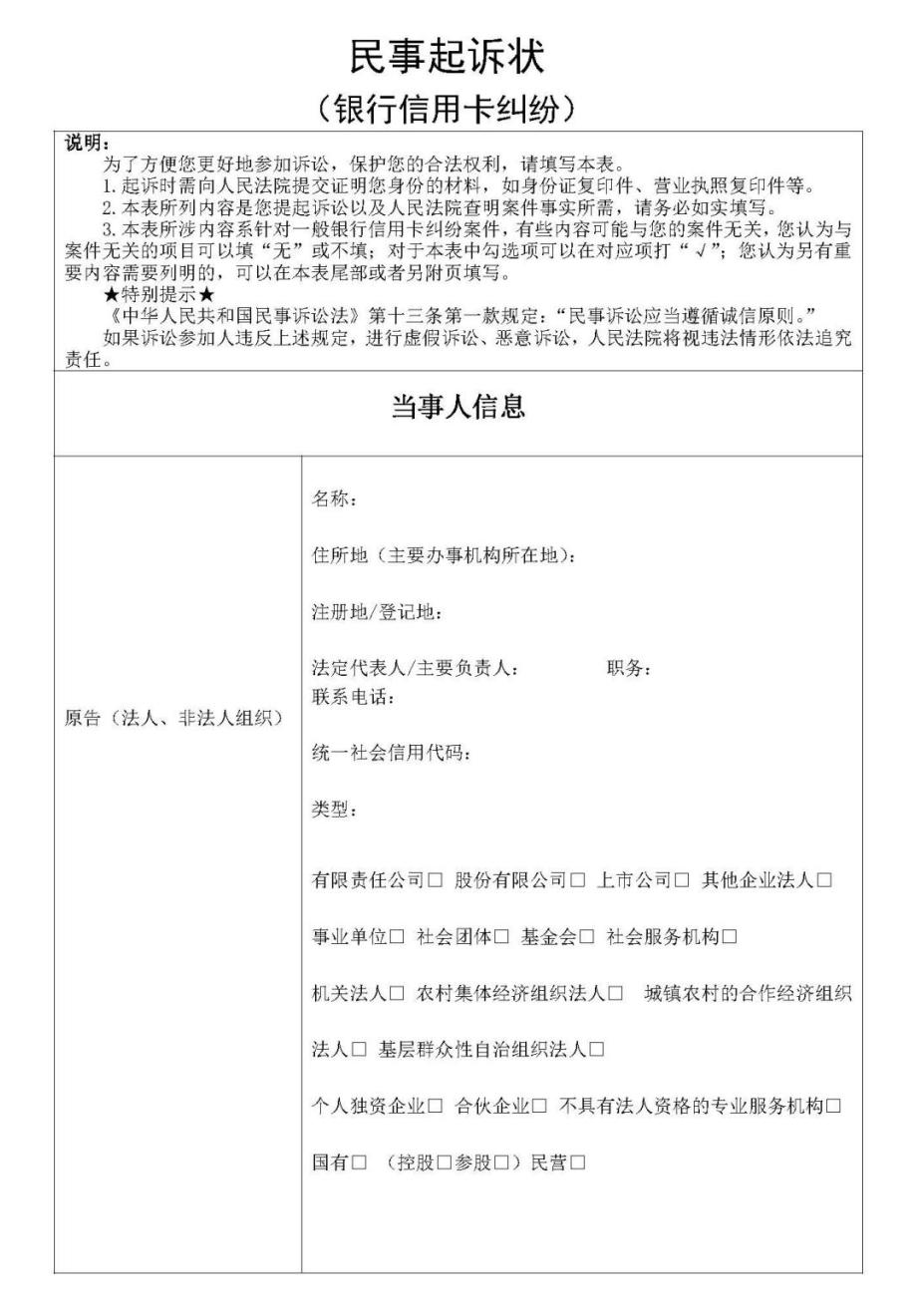 便民新举措!手把手教您规范填写起诉状、答辩状示范文本之银行信用卡纠纷