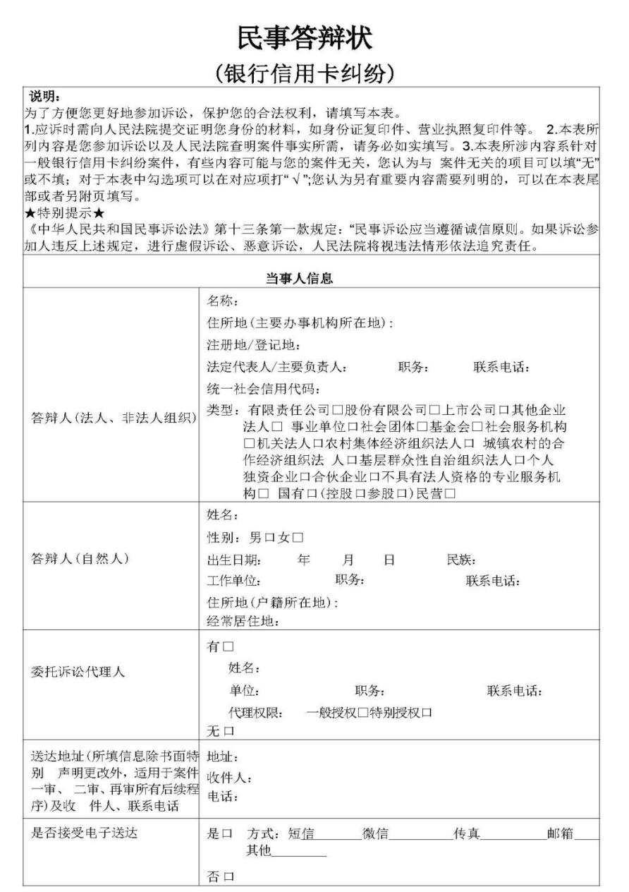 原标题:《便民新举措!手把手教您规范填写起诉状、答辩状示范文本之银行信用卡纠纷》