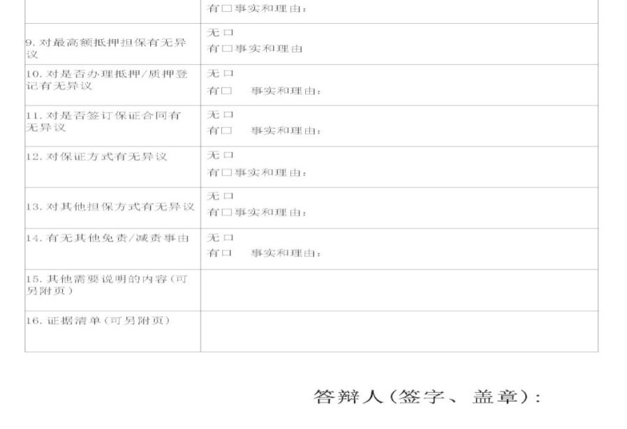 填写答辩状时除当事人信息要求与填写起诉状一致外,还需要注意两点:第一,填写答辩事项和依据时,要针对原告的诉讼请求逐项表达认可或异议。认可原告诉讼请求的,勾选“确认”;有异议的,勾选“异议”,并在相应栏目中写明异议的内容。