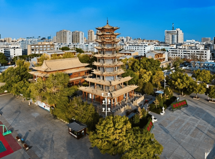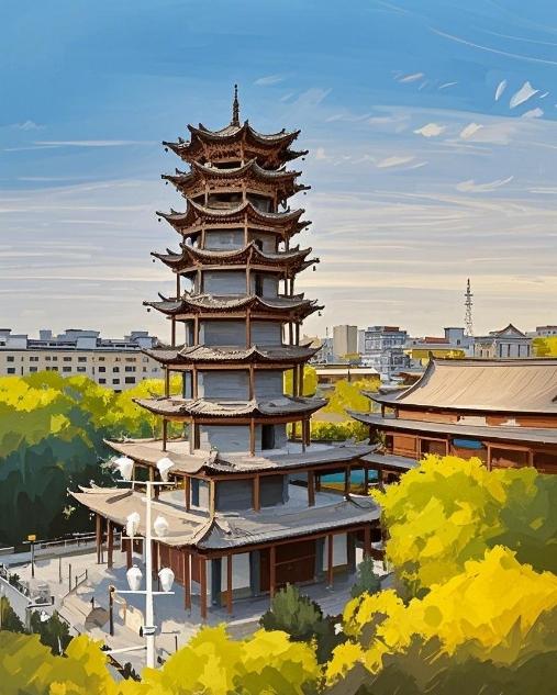 张掖木塔风铃摇曳、塔影婆娑