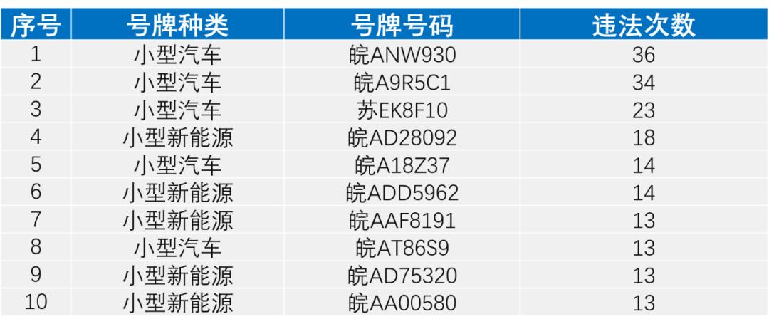 非现场处罚违法车辆TOP10
