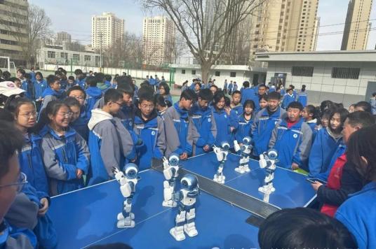 室外展区,市、区科协两辆科普大篷车化身为“移动科技馆”,满载声、光、电、磁互动展具,在工作人员细致地讲解下,引导孩子们亲手调试科普设备,帮助他们理解科学概念,通过直观展示和互动体验,让同学们亲身感受科学的魅力。特别是机器人展示环节,六个舞蹈机器人在音乐伴奏下进行着整齐划一的动作,灵巧可爱的机器狗在操控下完成各种高难度动作,引起学生们浓厚兴趣,纷纷上前围观,现场气氛十分热烈。