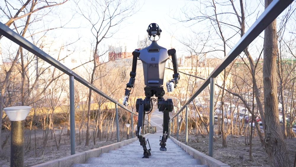 近日,国地共建具身智能机器人创新中心(北京市人形机器人创新中心有限公司)自主研发的“天工”人形机器人顺利完成技术升级。在户外真实地形测试中,“天工”成功登上北京市通州区海子墙公园最高点,成为全球首个能在室外连续攀爬多级阶梯的人形机器人。该机器人通过多能具身智能体“开物”所包含的具身“大脑”和具身“小脑”,实现了“感知行走”,能在行进中瞬间“看清”前方地形并立即生成对环境的准确分析,实时调整全身动作与步态,自如应对各种台阶路况。