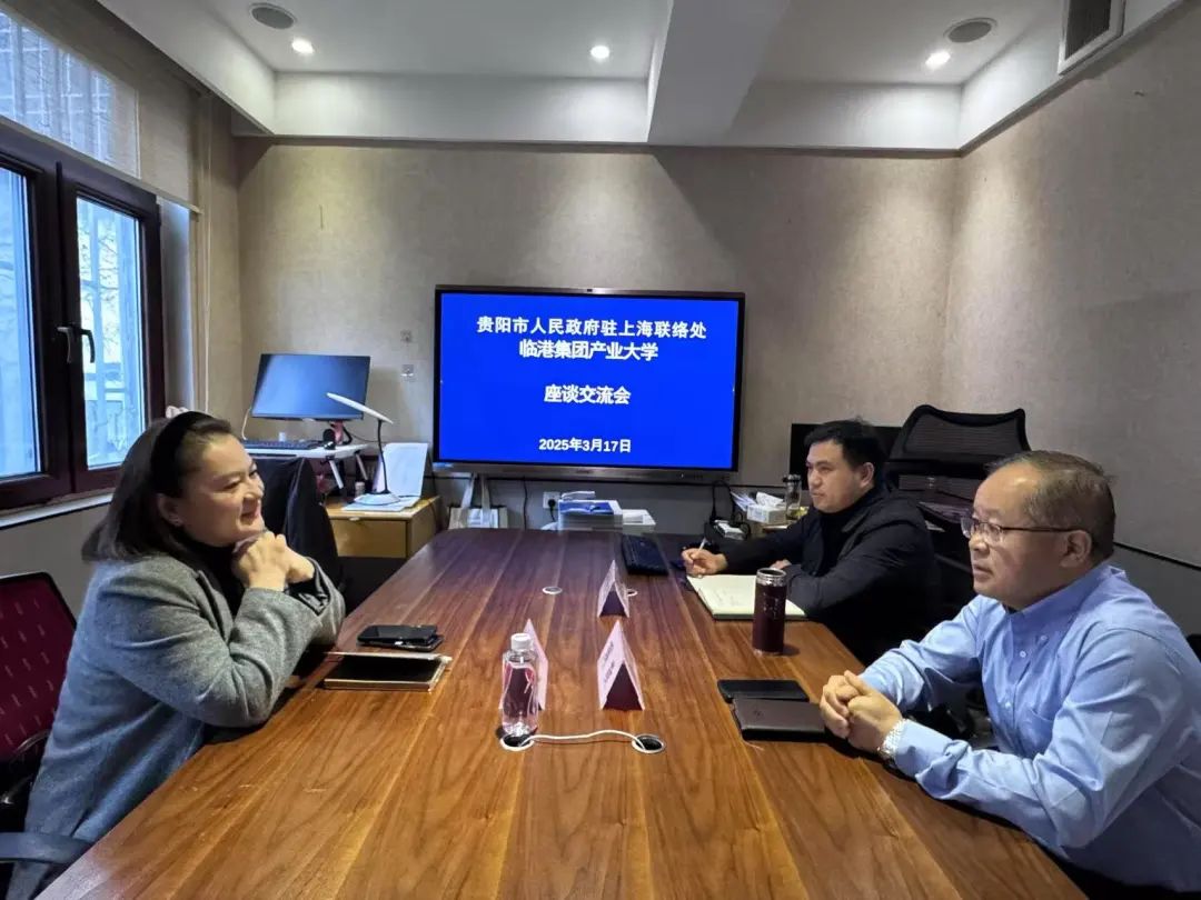 3月17日,贵阳市人民政府驻上海联络处副主任周敬与来访的临港集团产业大学产教融合中心副主任赵彤座谈交流,招商二组参加。