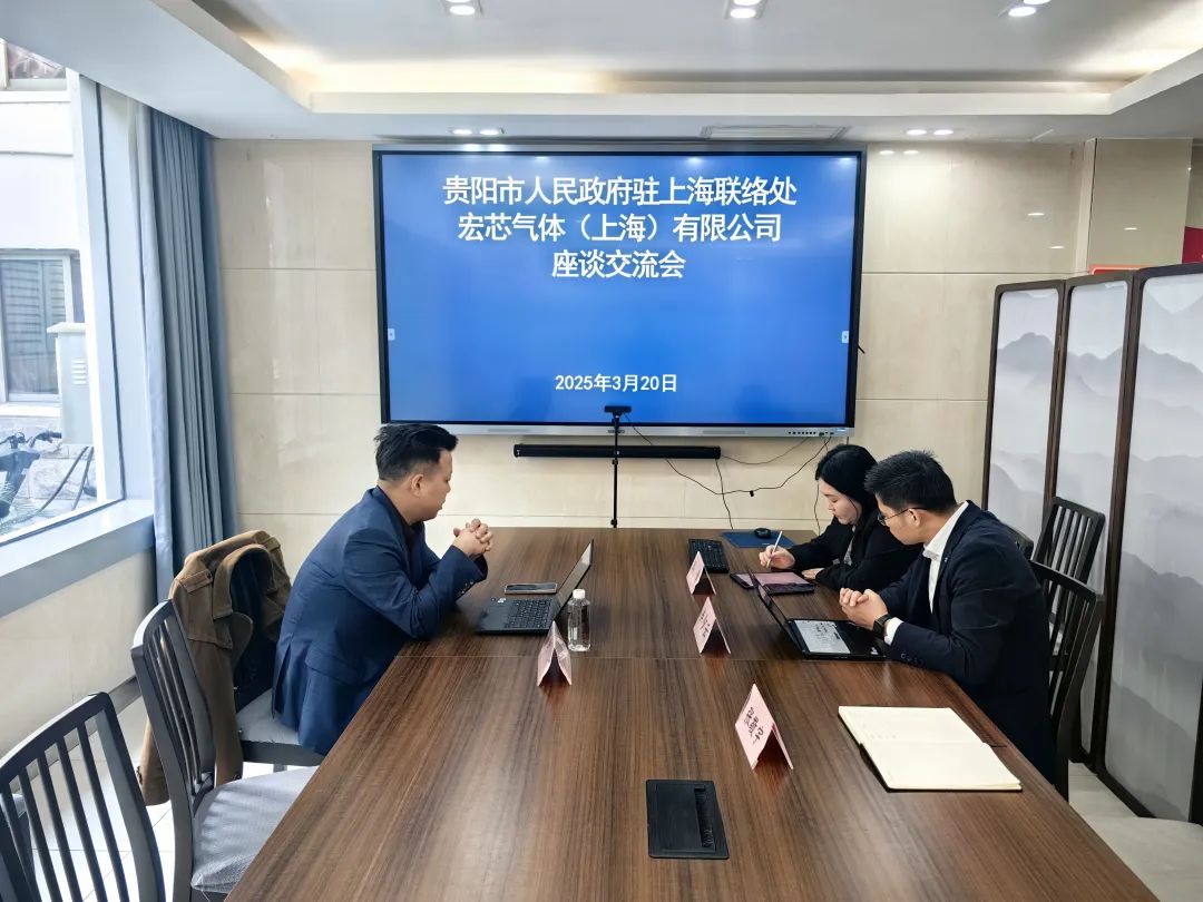 3月20日,贵阳市人民政府驻上海联络处招商三组与宏芯气体(上海)有限公司业务发展总监封烨座谈交流。