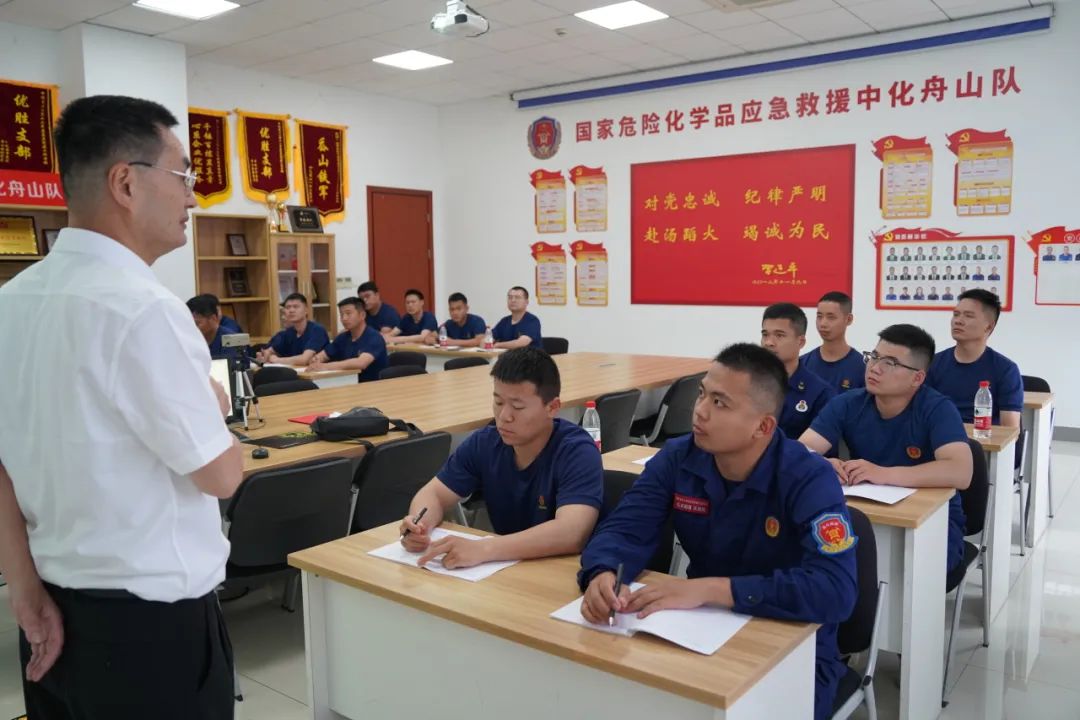 中化舟山队始终以政治建队为第一要务,由依托企业总经理兼任第一政委,坚持党建引领,以信念铸魂为根基,全面增强队伍凝聚力、战斗力、号召力,为区域安全生产形势稳定提供可靠保障。
