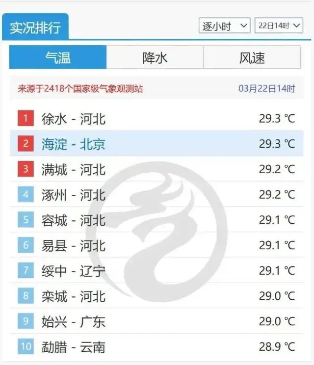 北京海淀的气温直接“卷”成了全国(并列)第一