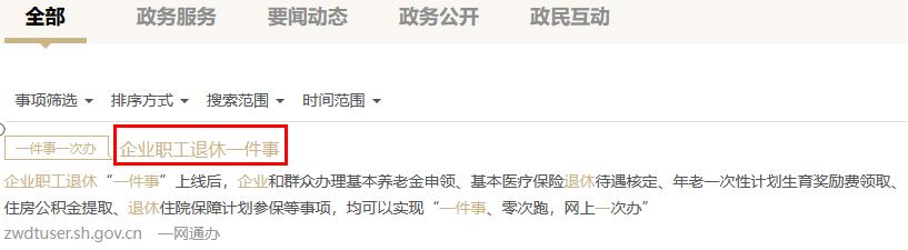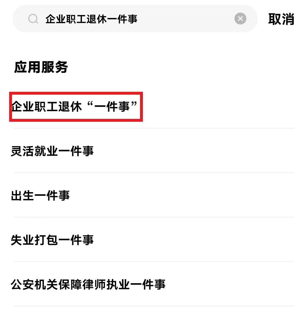 方式一:在搜索框输入【企业职工退休一件事】选择进入。
