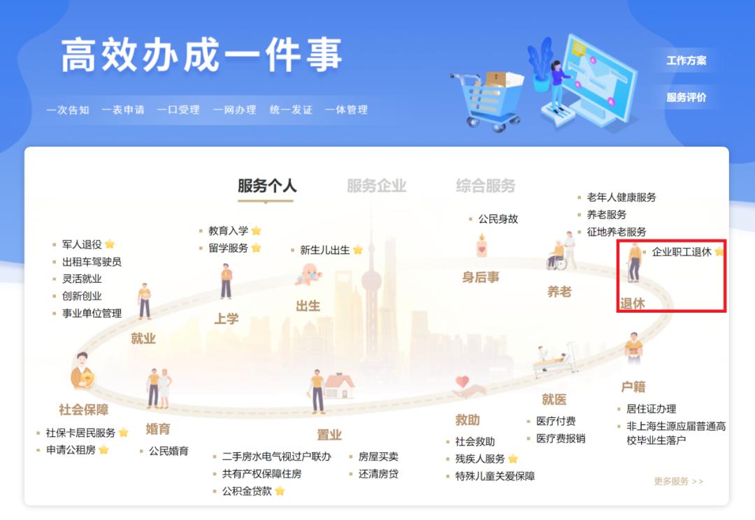 方式二:点击页面下方【办事】栏目,进入【一件事服务】专区,选择【企业职工退休一件事】。