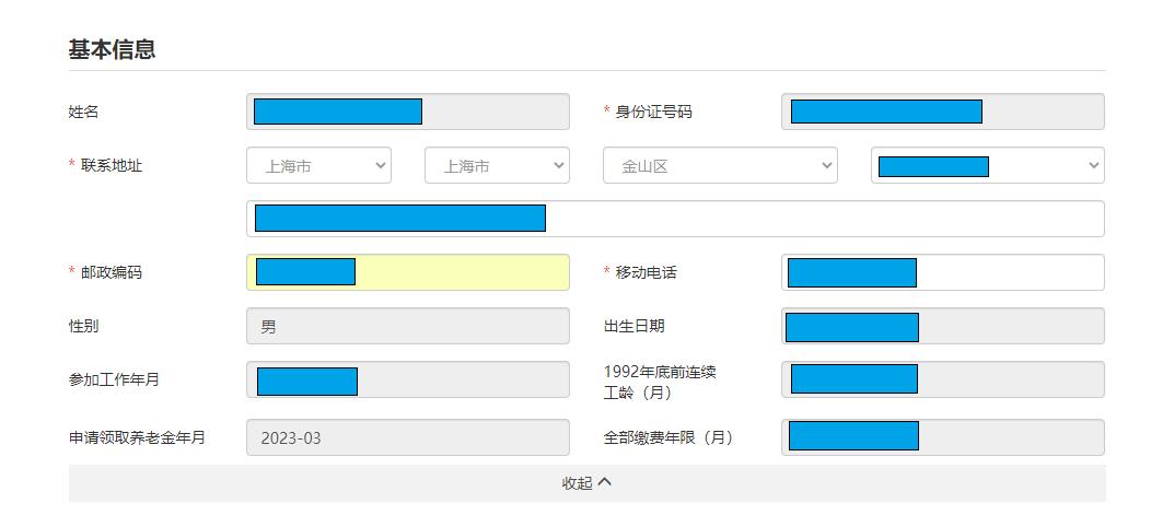 注:对于不可自行修改信息,系统默认为【收起】状态,点击【更多】可以自行查看。