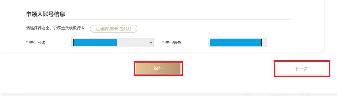 【申领人账号信息】默认为社会保障卡,校验通过的,不可选择其他卡折。若社会保障卡未激活金融功能,系统将提示“您的社保卡银行账户尚未激活,为保证您能够及时领取相关待遇,请尽快至开户银行网点办理激活(待遇可正常入账,激活后即可领取)”,点击【继续申报】后可继续操作。若社会保障卡自动校验不通过的,可自行录入其他银行卡折信息(需要本人的实名制一类卡),并进行校验。