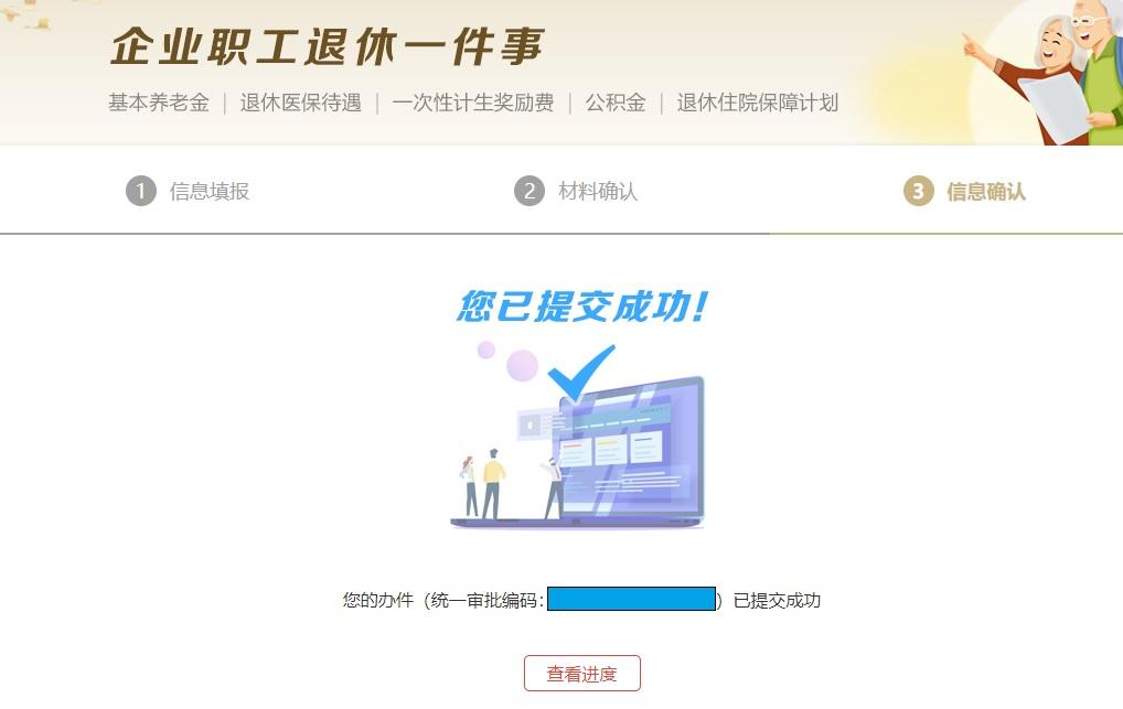 进入【信息确认】页面,核对申报信息后,点击【确认提交】,系统提示【您已提交成功!】,完成业务申报。