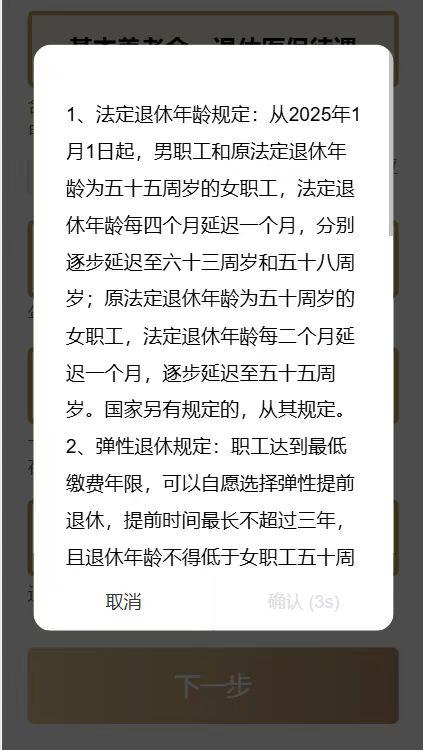 基本信息填写无误后,继续选择需要申报的项目。其中【基本养老金、退休医保待遇】默认为必选项,【年老退休一次性计划生育奖励费】【住房公积金】【退休住院保障计划】可根据需求进行申报。