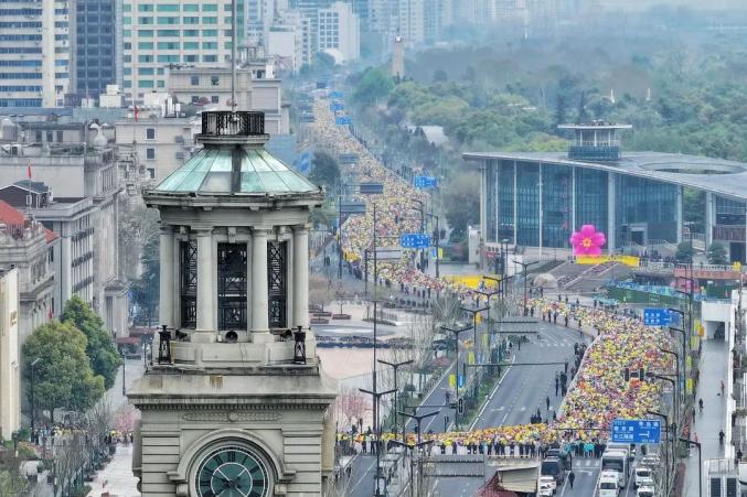 武汉马拉松准时鸣枪,4万名跑者开跑!全马男子冠军是他