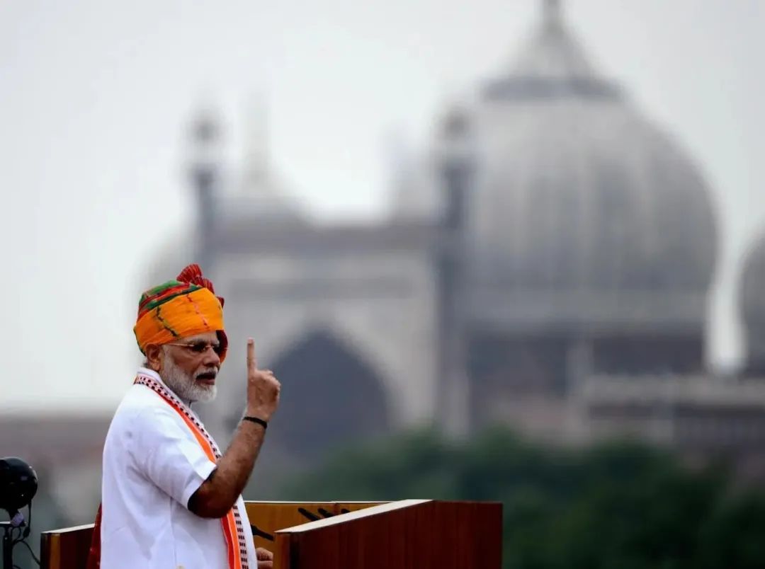 2019年8月15日,印度新德里,印度总理莫迪在独立日庆祝活动上讲话。(来源:新华社)